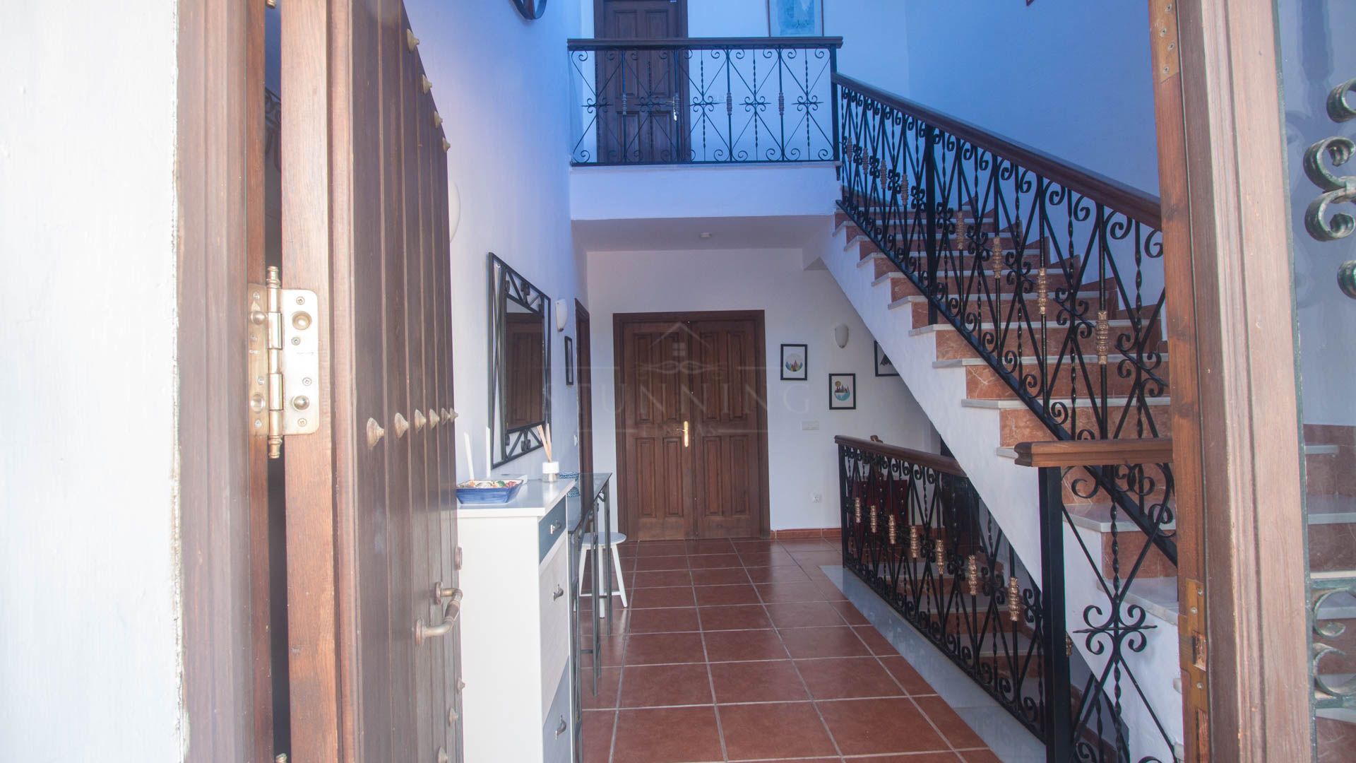 • Entrance hall with a beautiful tower-like structure and wooden ceiling, adding character and warmth.
