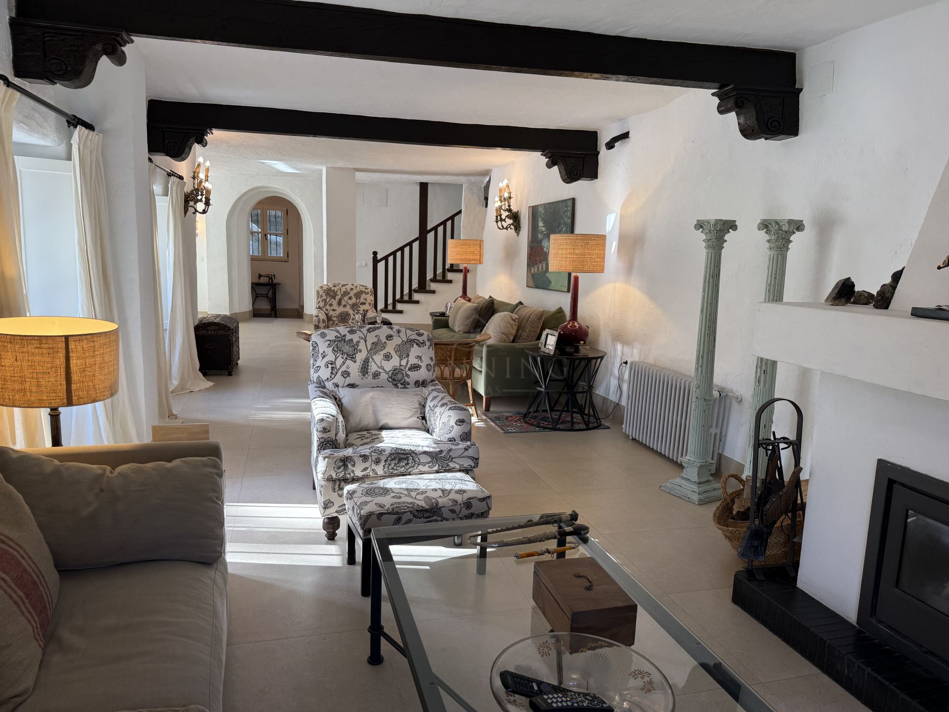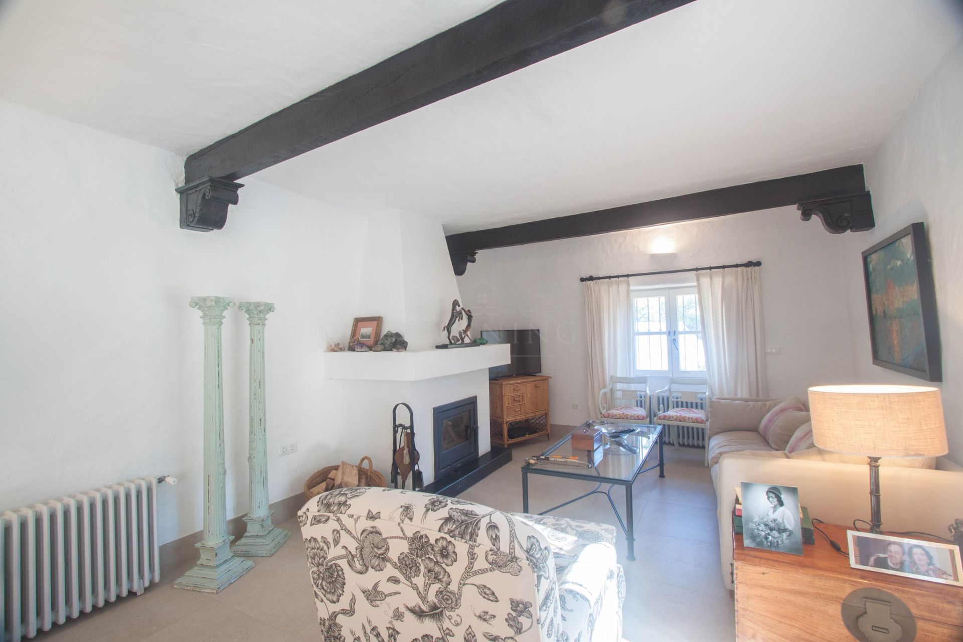 • Amplio salón con techos altos, vigas de madera y chimenea.