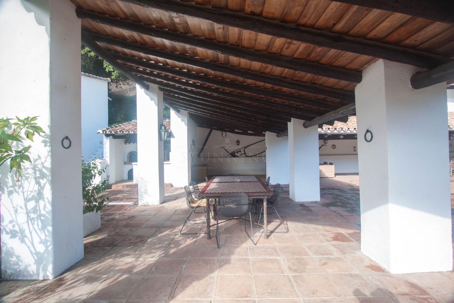 Esta finca, situada en uno de los entornos naturales más bellos de Casares, ofrece la auténtica esencia andaluza combinada con el máximo confort. Desde el primer momento, te recibe un jardín impecablemente cuidado y amplias terrazas que enmarcan la casa principal, construida al estilo tradicional de cortijo andaluz. Las grandes terrazas cubiertas permiten disfrutar del clima privilegiado de Andalucía durante todo el año.